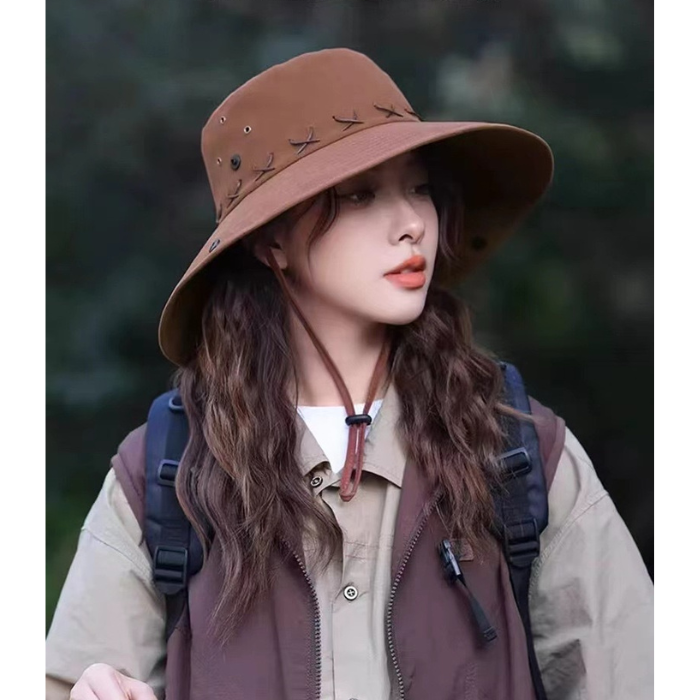 調節可能な顎紐付きで、アクティブに動いても安心して着用できるバケットハットです。
