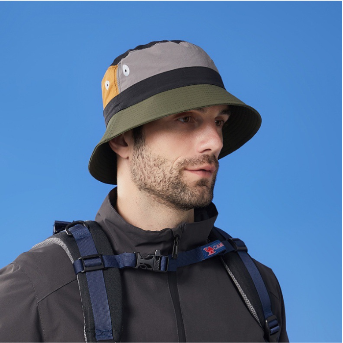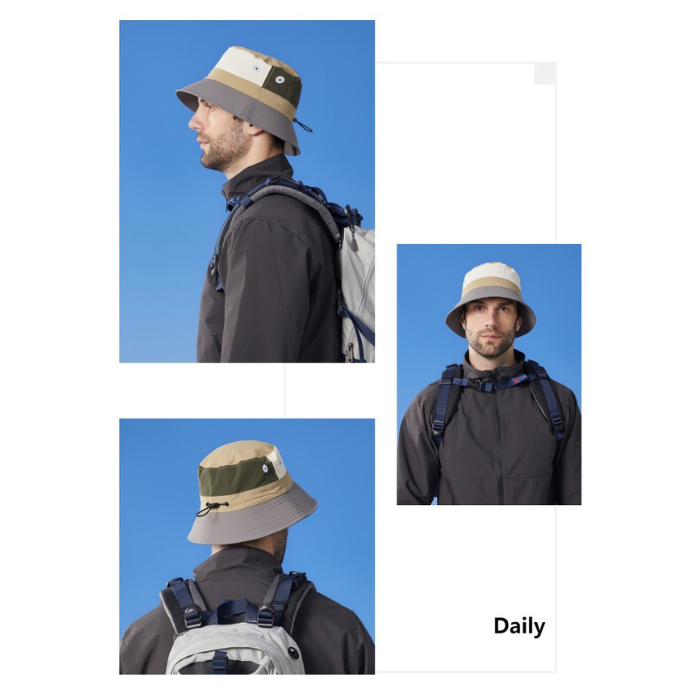 広めのつばで顔を紫外線から守りながら、頭部には通気性の良い素材を採用。