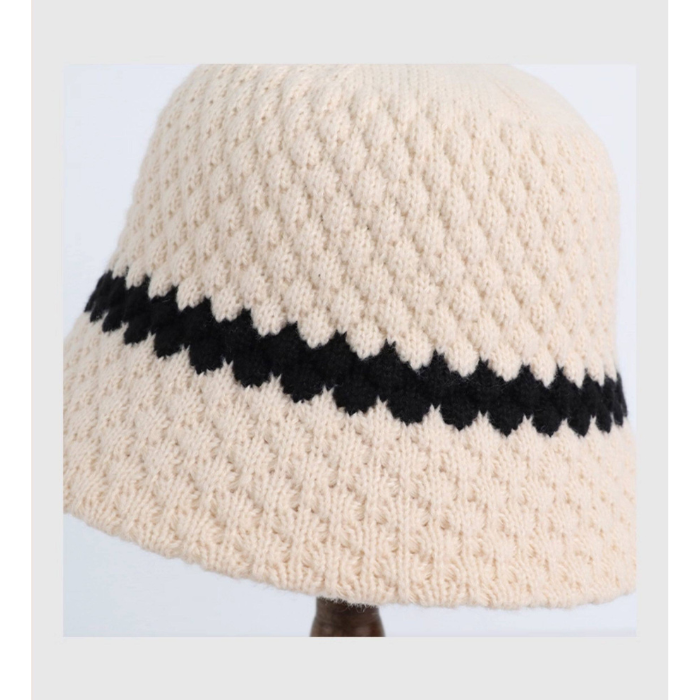 つばのリブ編みが個性的なデザインで、カジュアルからきれいめまで幅広いコーディネートに対応します。