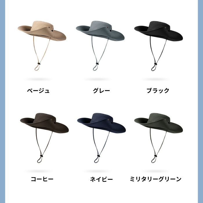 大きめのつばが日差しを遮り、登山や釣り、旅行などの様々な場面で活躍します。