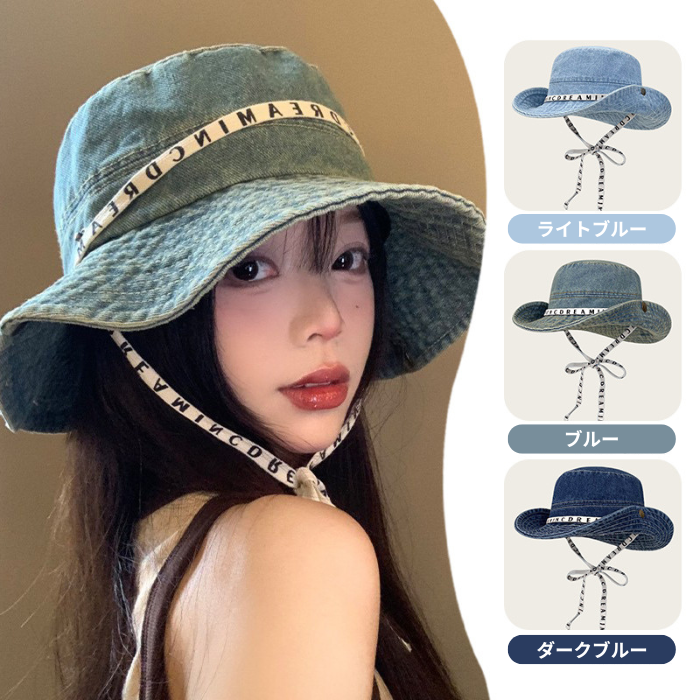 カジュアルで個性的なデザインが魅力的な紐付きバケットハットです。