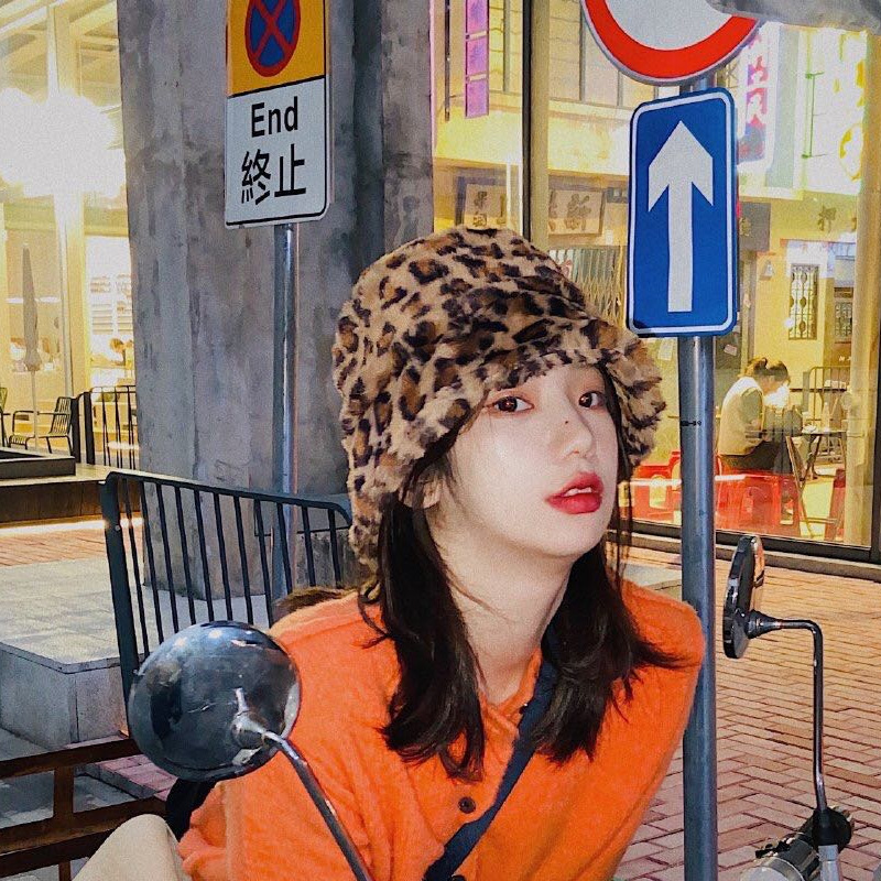 高級感のある豹柄デザインが顔周りを華やかに演出し、秋冬のコーディネートのアクセントになります。