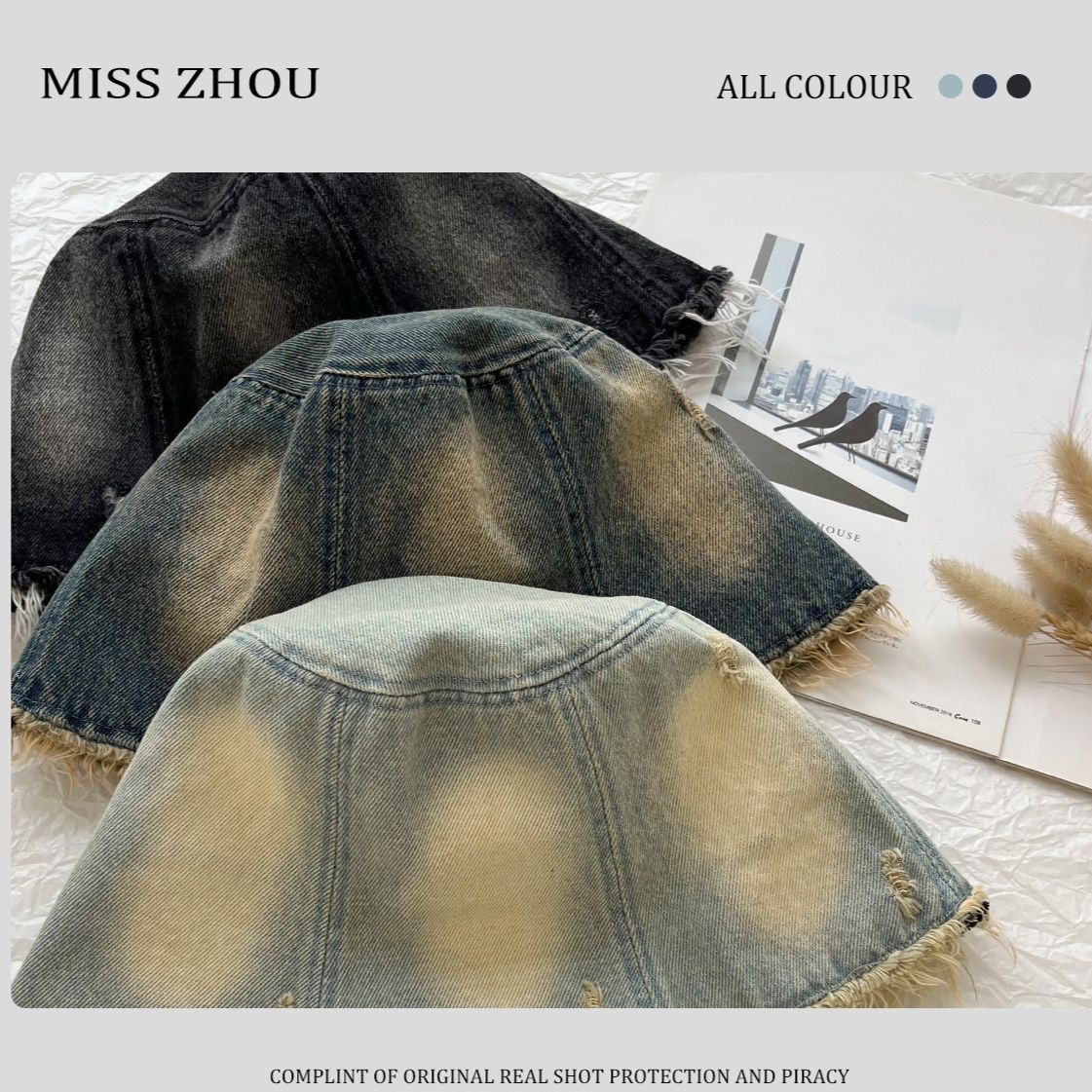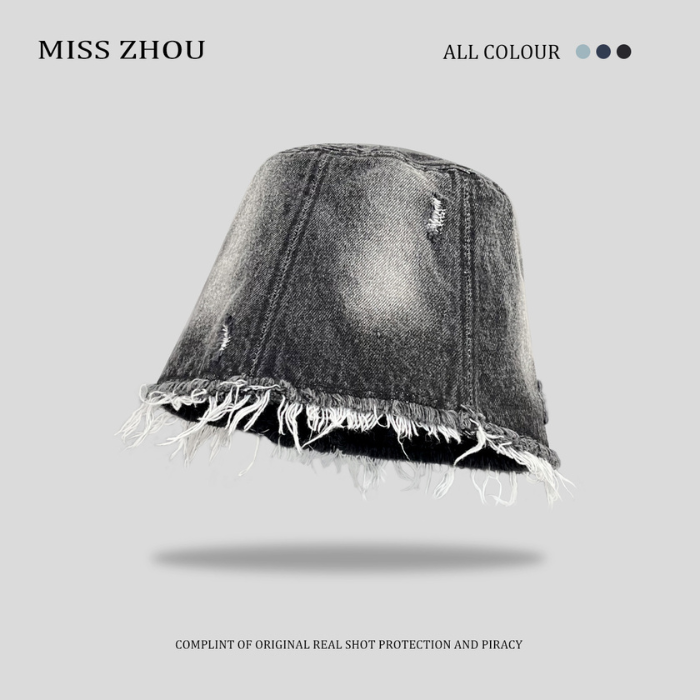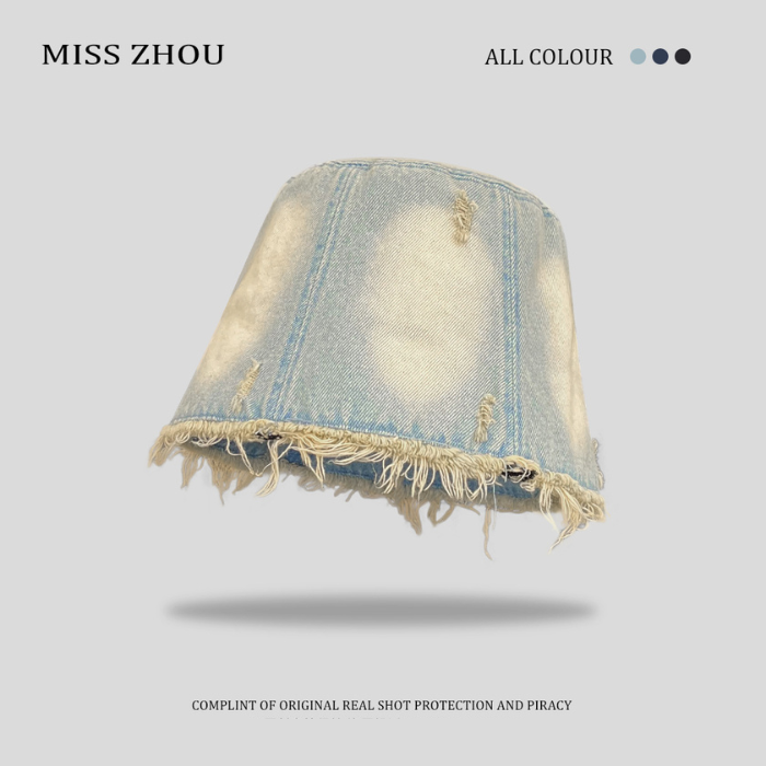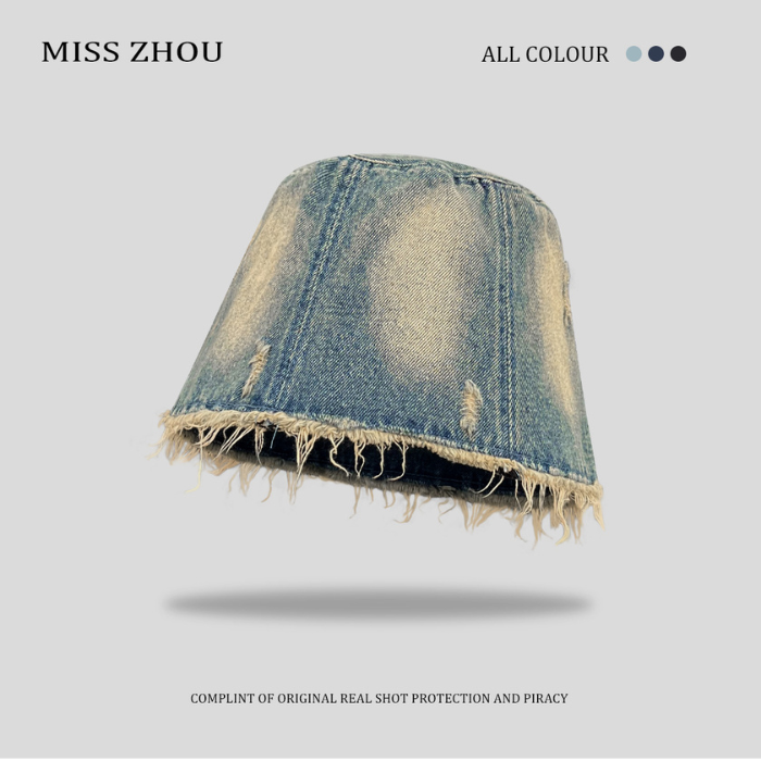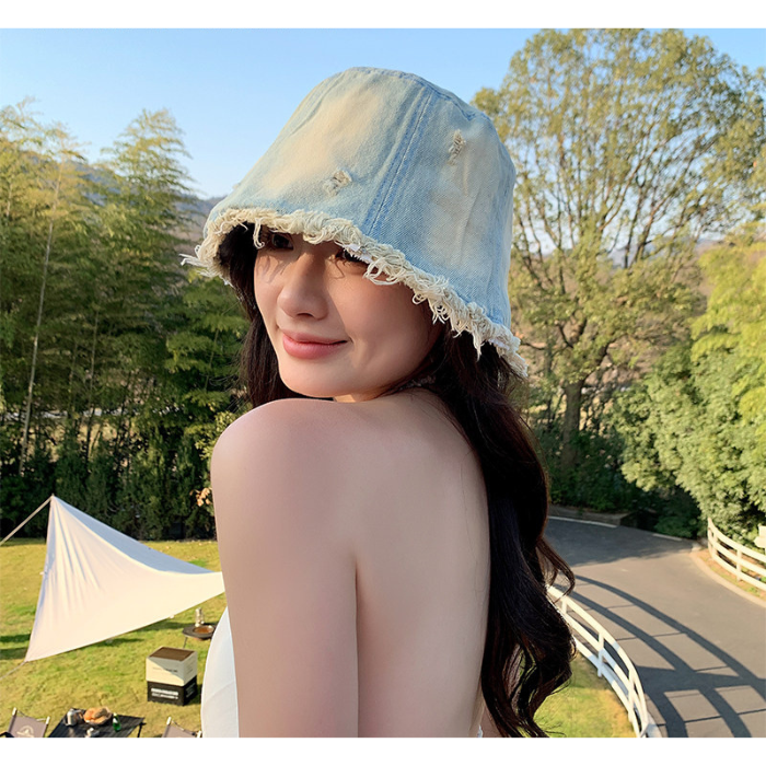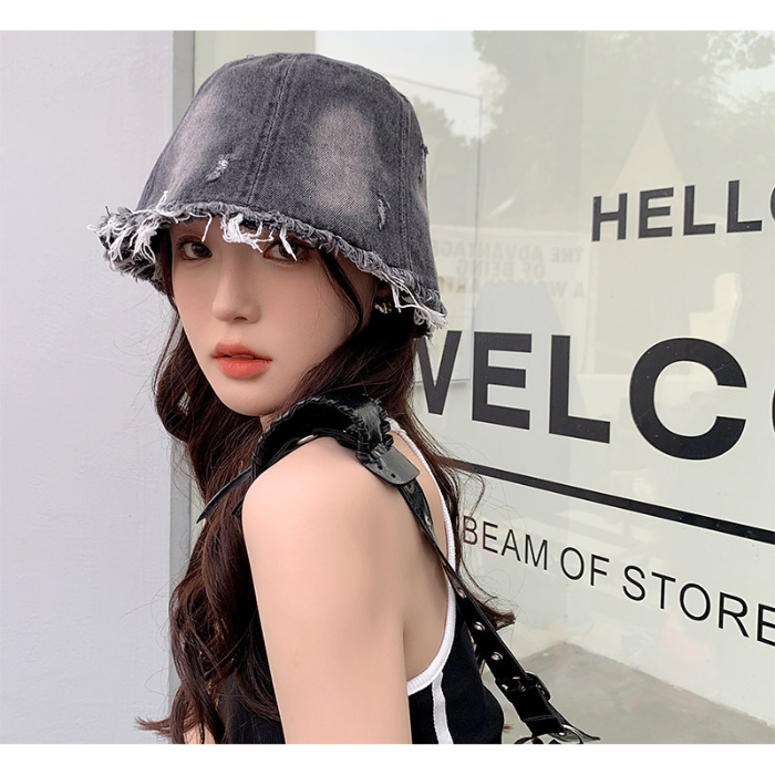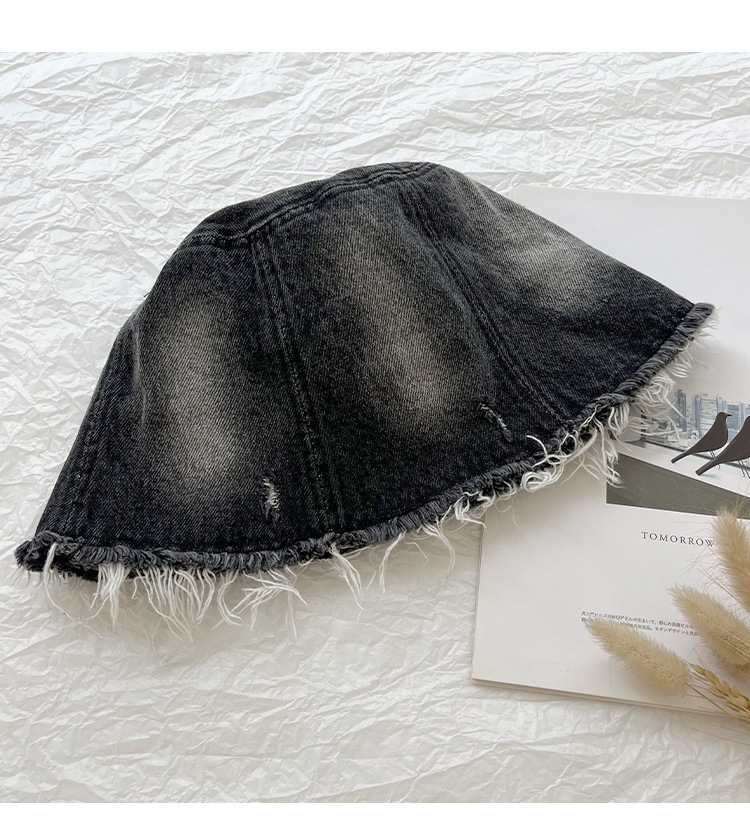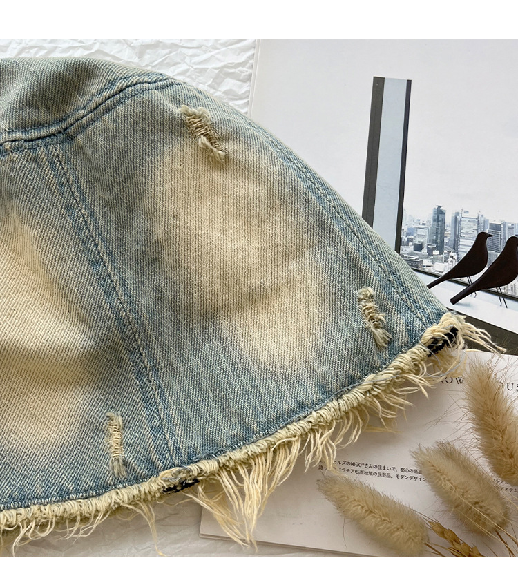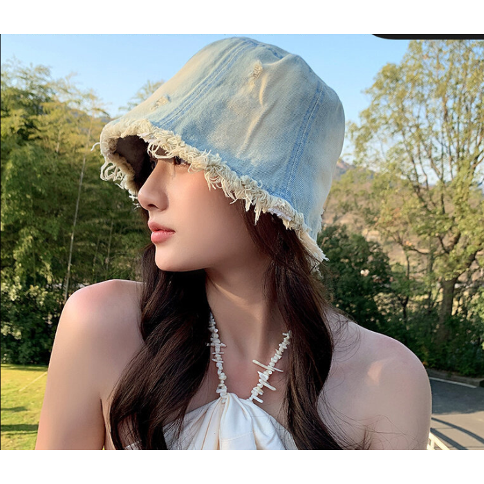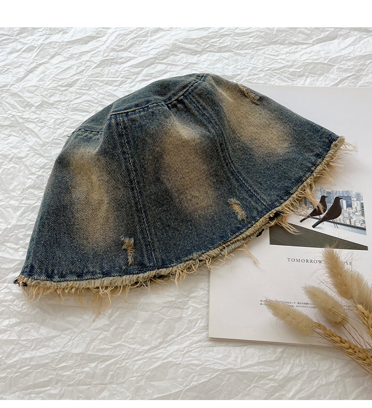 個性的なダメージ加工が魅力のデニムバケットハットです。