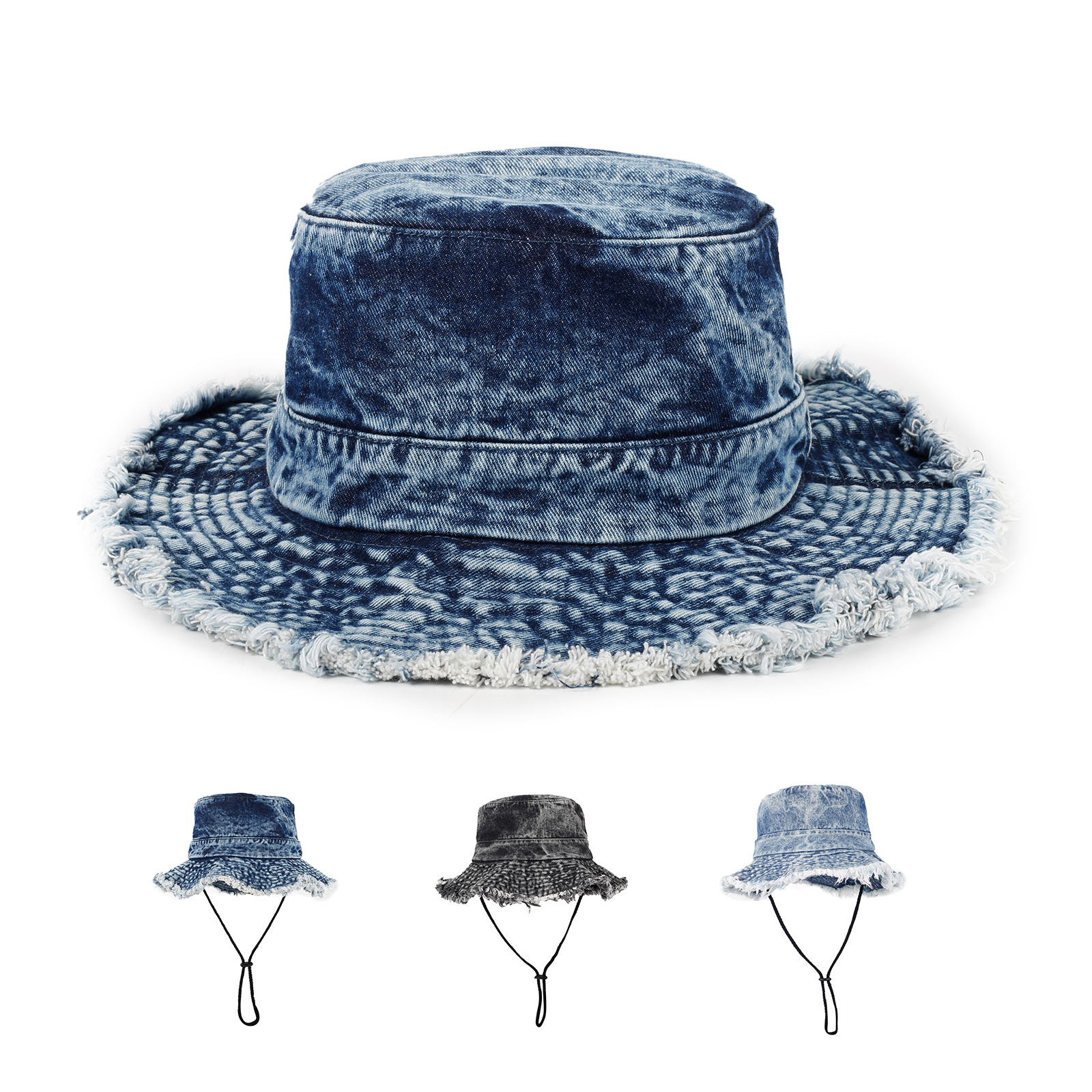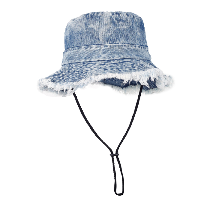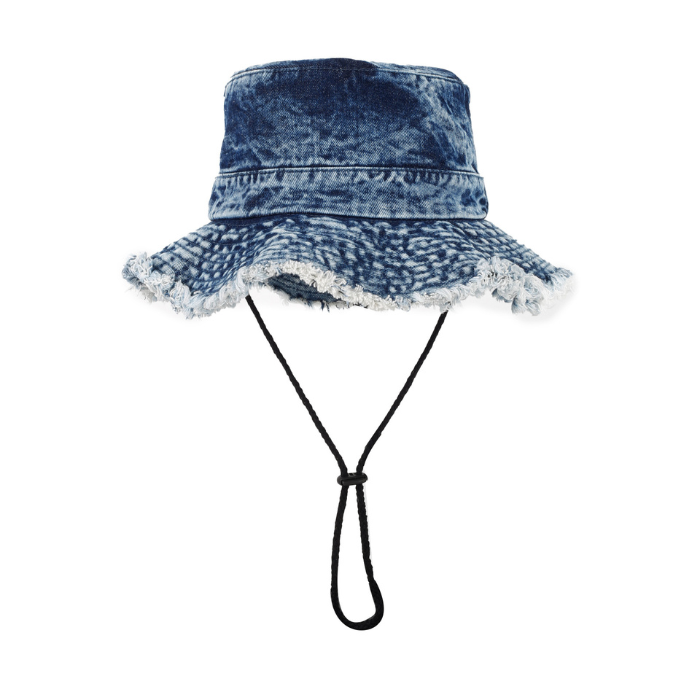 デニム素材を使用し、縁には個性的なフリンジ加工を施しました。
