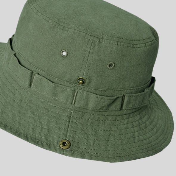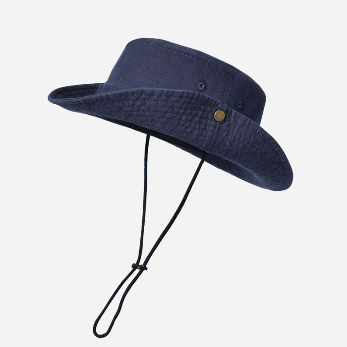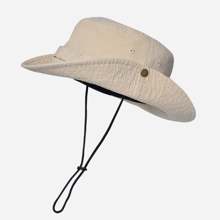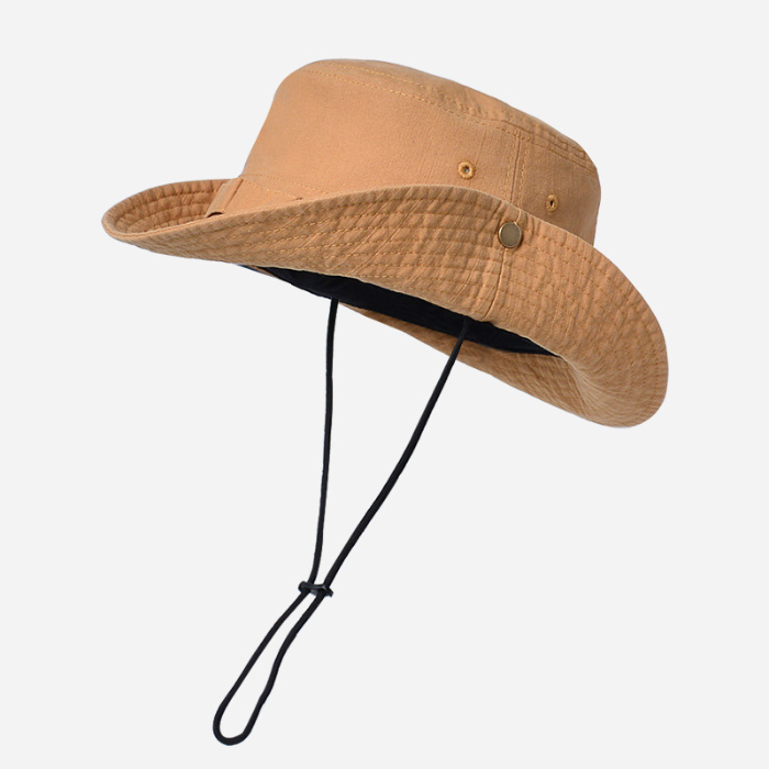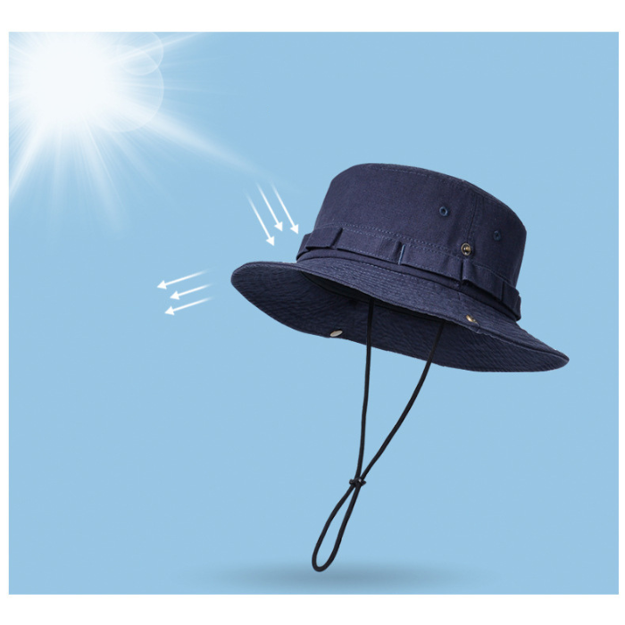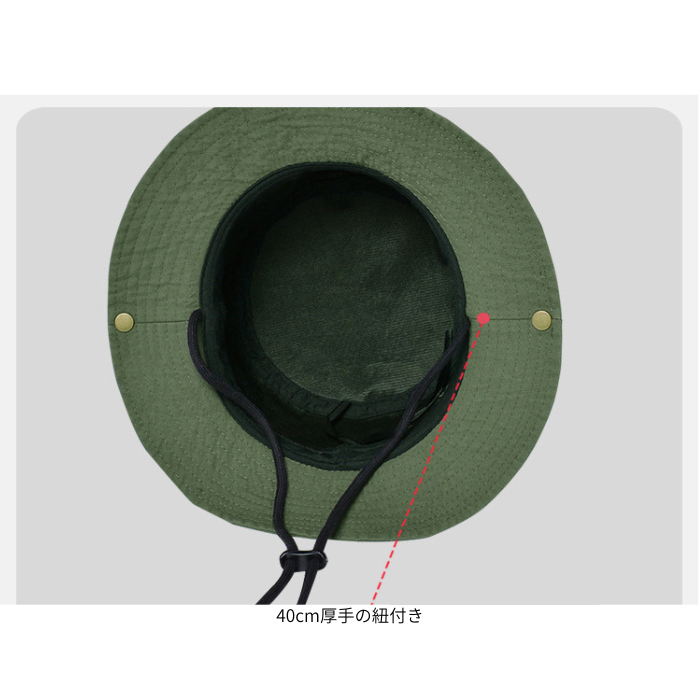 風で飛ばされる心配がない調整可能な紐付きで、アウトドアシーンでも安心して着用できます。