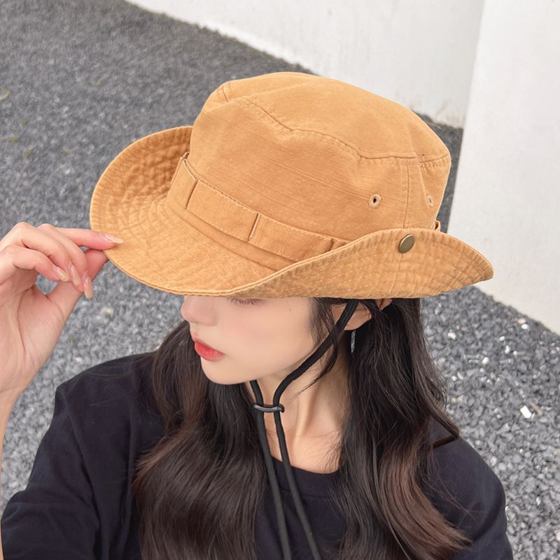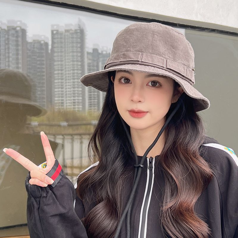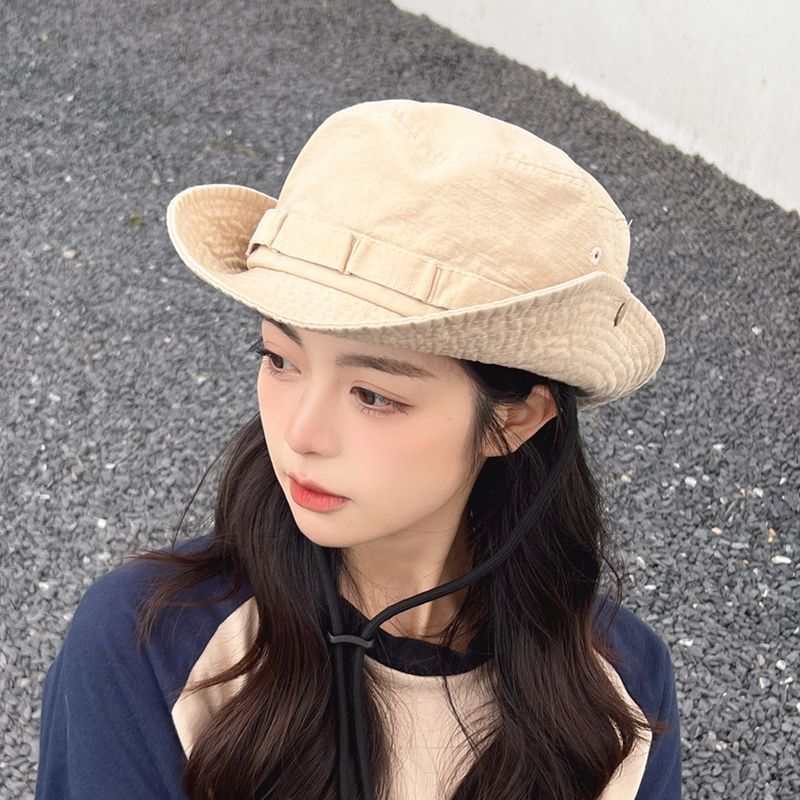 カジュアルにもきれいめにも合わせやすい紐付きバケットハットです。