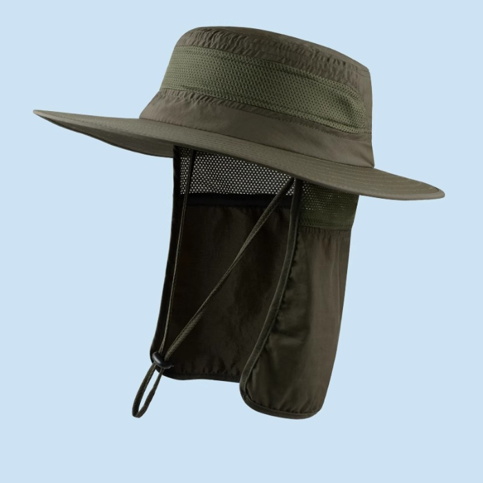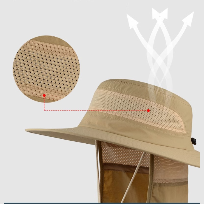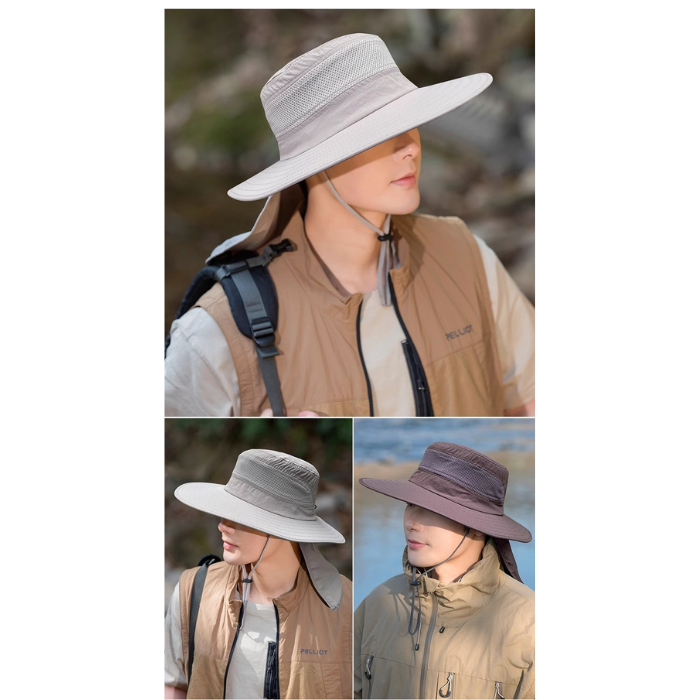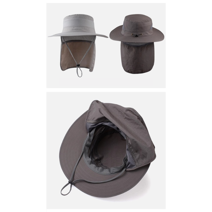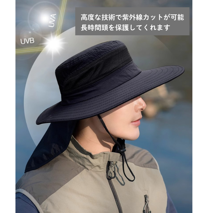 紫外線対策機能を備え、登山や釣り、ハイキングなど様々な場面で活躍する実用的な帽子です。