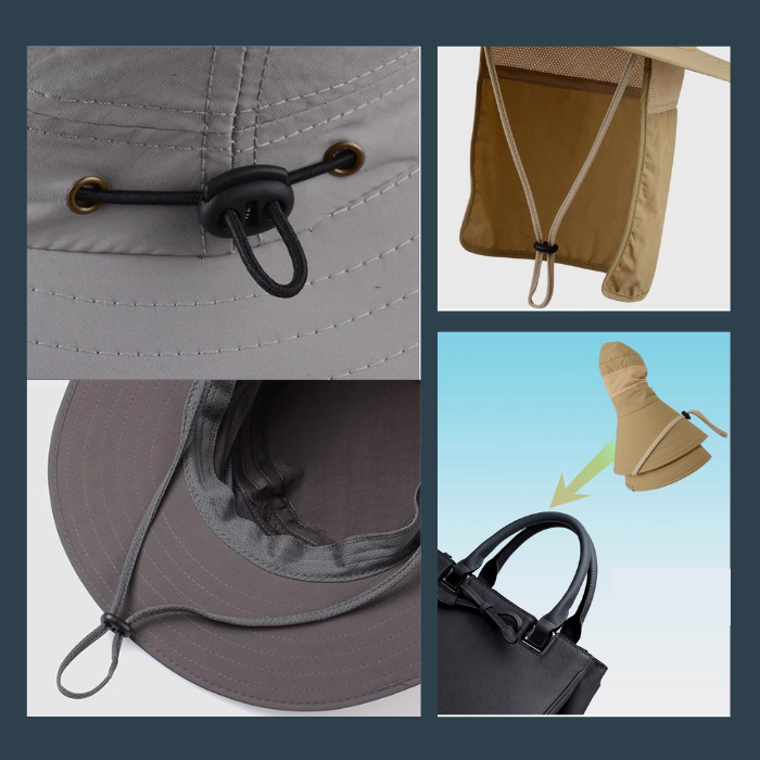 紐付きなので風の強い日でも安心して着用でき、アウトドアやレジャーに最適です。