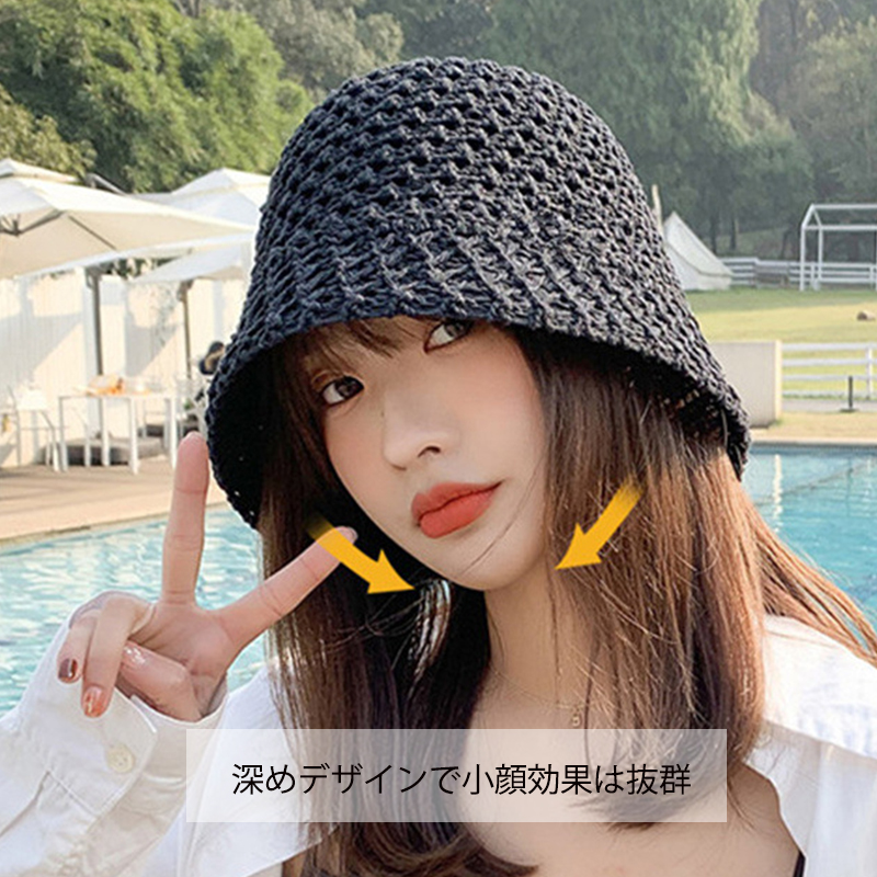 ・抜け感漂う編みデザイン。 ・オシャレに熱中症対策、紫外線対策できます。 ・深めデザインで小顔効果は抜群! ・ソフトな手触りと締め付け感のないストレスフリーかぶり心地。 ・得にカジュアルコーデにも合わせやすいアイテムです。 ・通気性に優れているので蒸れにくいです。 ・折りたたんでコンパクトになるので、カバンなどに入れて持ち運びができます。 ■サイズ(単位:約cm) フリーサイズ 56cm~58cm ■伸縮性 なし ■生地の厚さ 普通 ■主素材 指定外繊維(紙)ポリエステル