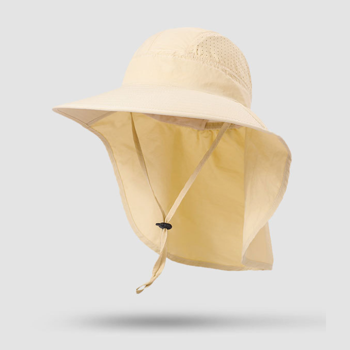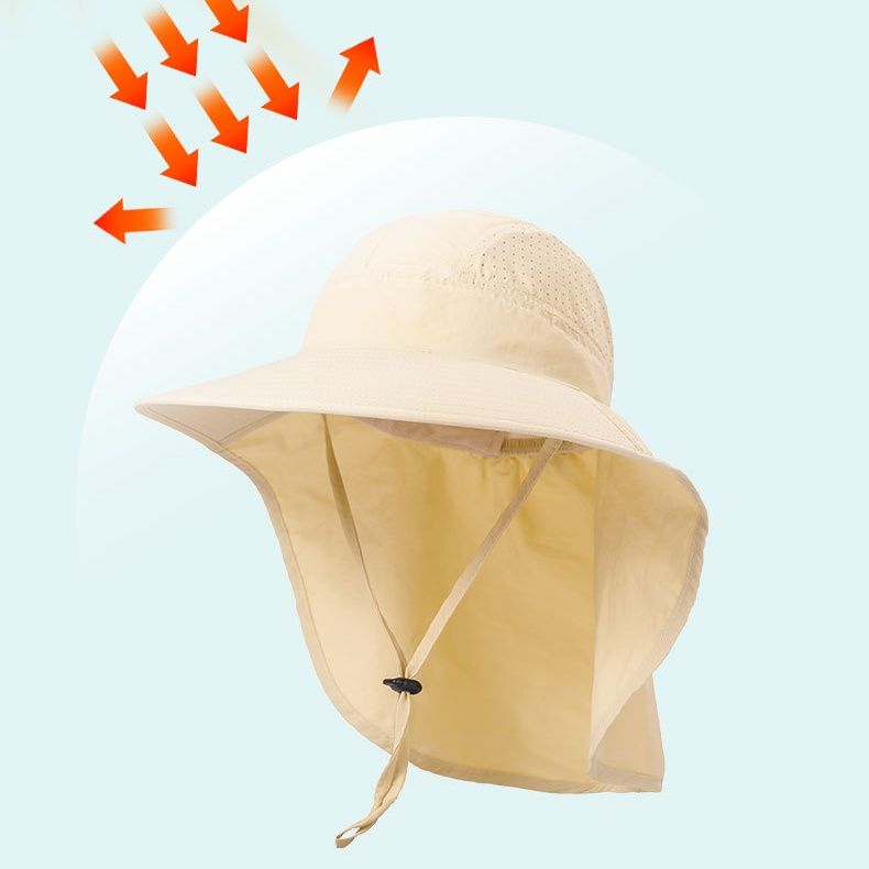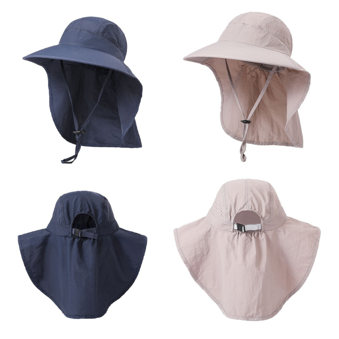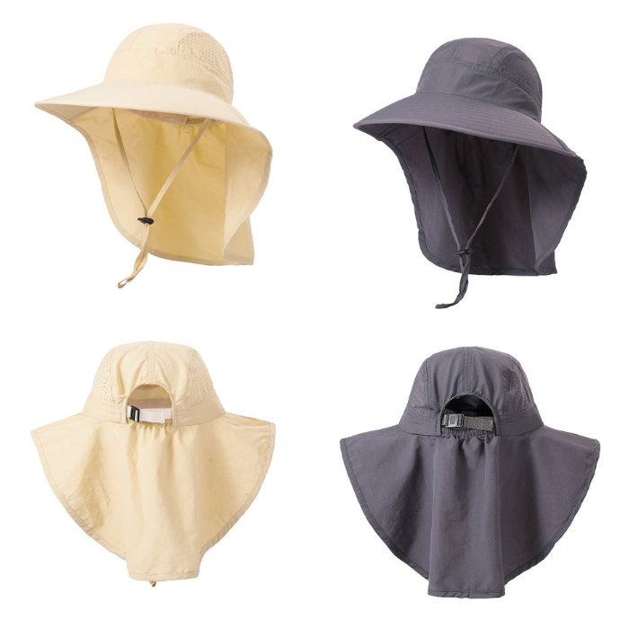 取り外し可能な日除けカバーが首筋まで完全にカバーし、アウトドアや登山、ガーデニングなど様々なシーンで活躍します。