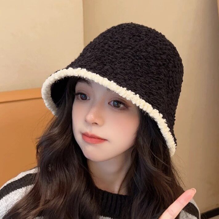 ふんわりとした素材感が魅力的なバケットハットです。 縁取りにボリューム感のあるファーをあしらい、防寒性と可愛らしさを両立しました。 編み込みデザインのクラウン部分と対照的なファーの質感が個性的なアクセントになります。 カジュアルなコーディネートに取り入れやすく、秋冬のおでかけスタイルを華やかに演出してくれるアイテムです。 深めのかぶり心地で小顔効果も期待できます。