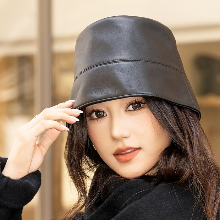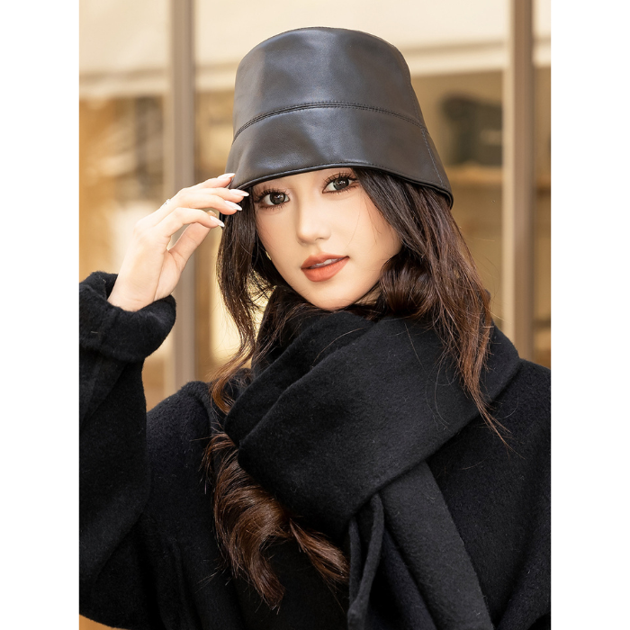 上質な本革を使用した高級感あふれるバケットハット。